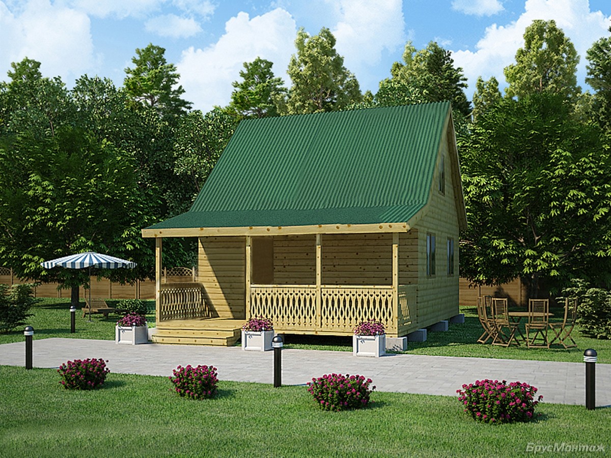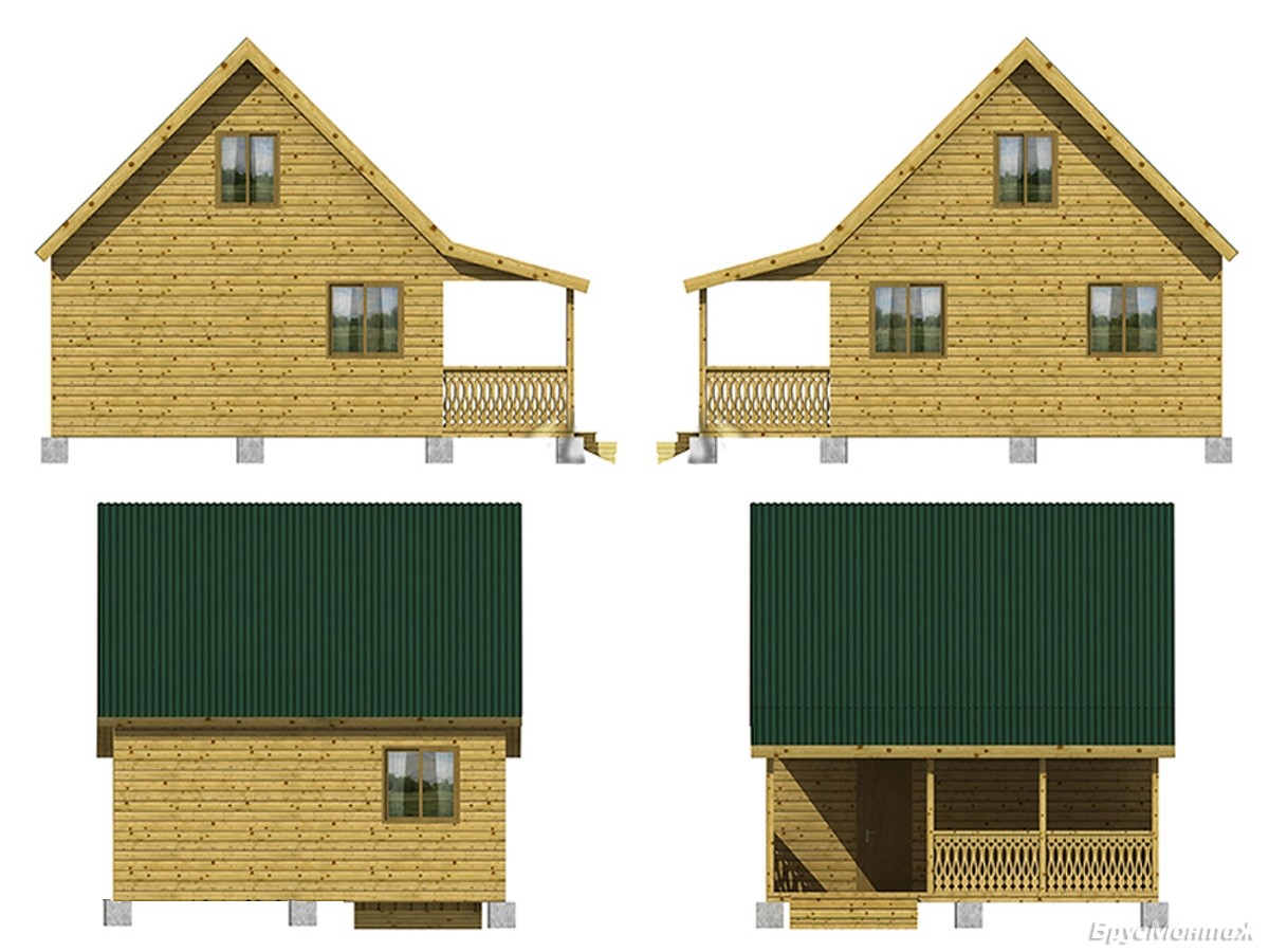 Кровля Ондулин (цвет – красный / зелёный / коричневый) или оцинкованный профнастил. Под крышу укладывается гидропароизоляция. Возможна замена кровельного покрытия на металлочерепицу или мягкую кровлю.