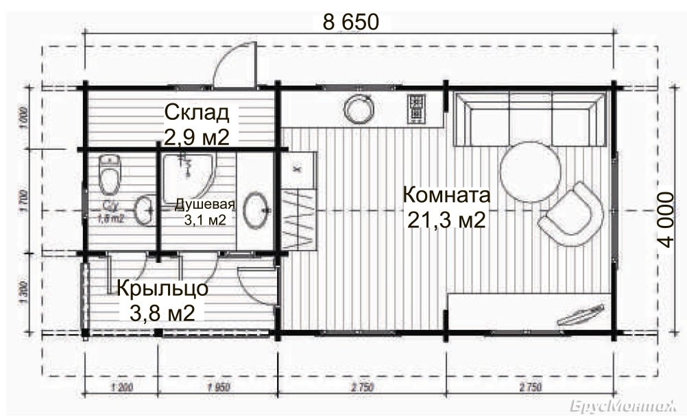Основание (обработанные антисептическим составом брус основания, лаги)